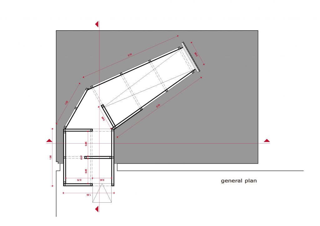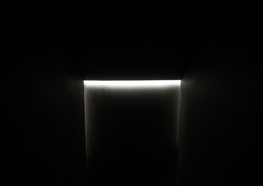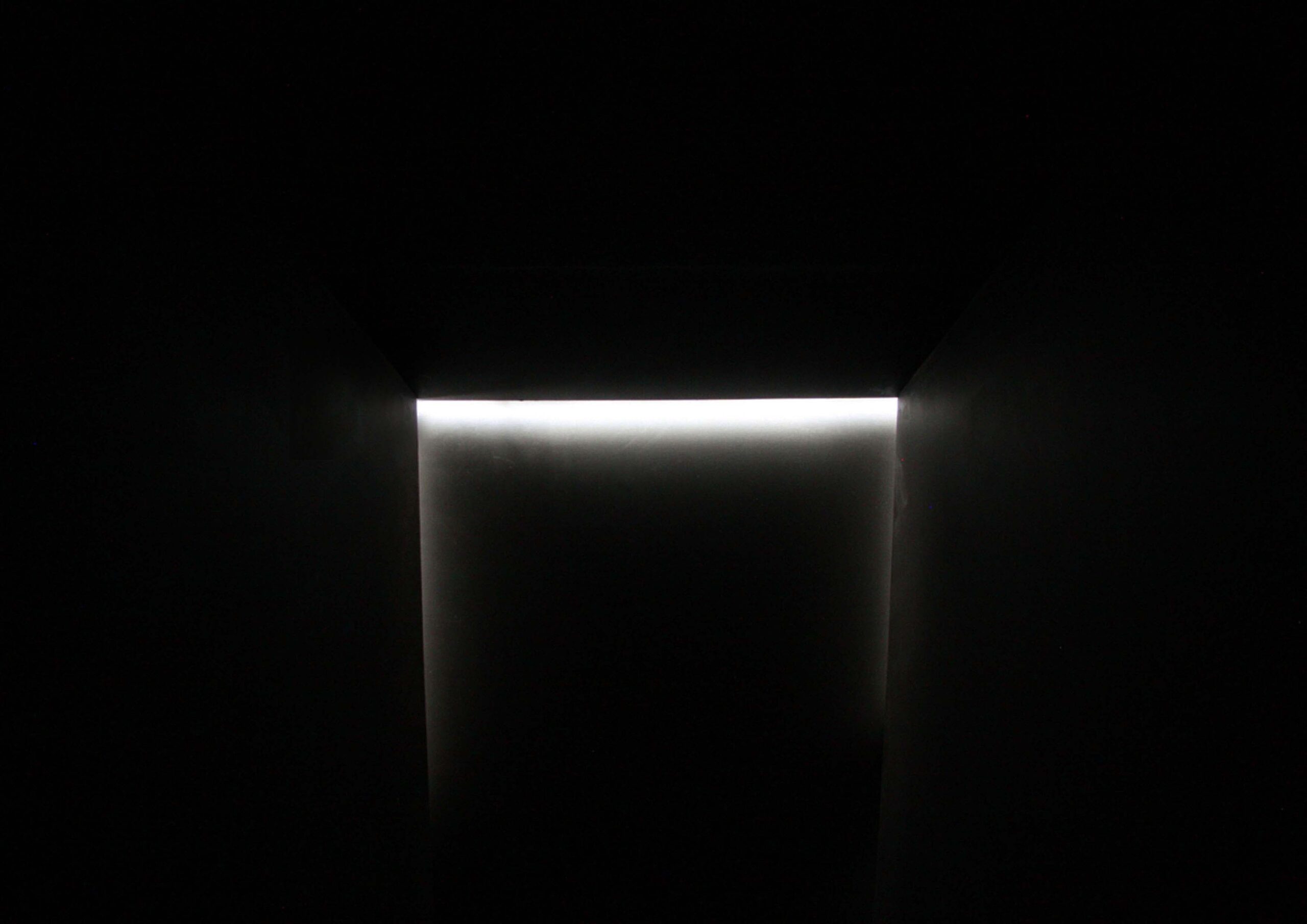 Dead-End was a labyrinth forming a marginally inaccessible exterior and a box within a box interior. The articulation of the space itself produced overlapping transitions of natural and artificial light coming from the exterior, which was primarily excluded from the sensory field of the viewer once inside. The succession from light to darkness, the encounter with limited depth or height of space and the unexpected absence and reappearance of light created an immersive experience based on sensory deprivation and disorientation. Dead-End led to a narrow and – perceived as long– interior space defined by nothing but natural light coming from the office skylight. The light penetrated its interior through a slightly open end at the very back, controlled by an electromagnet and a timer.