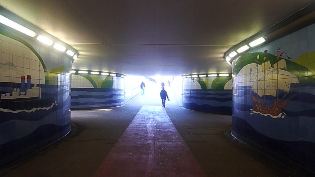 Estrangement was a site-notational project that has reference to the main pedestrian subway in the town of Dover in Kent. Observational mapping of passers-by flow as well as the making of a panoramic notation video explored immersion as a layer of data to be inserted and perceived in a site different from the one they describe. In the attempt to create the feeling of nausea from being trapped in a spinning motion, model and video constructed an off-site virtual space that (re)presented the site as distorted via photographic or moving image. An immediate relationship between subject and surroundings is established.