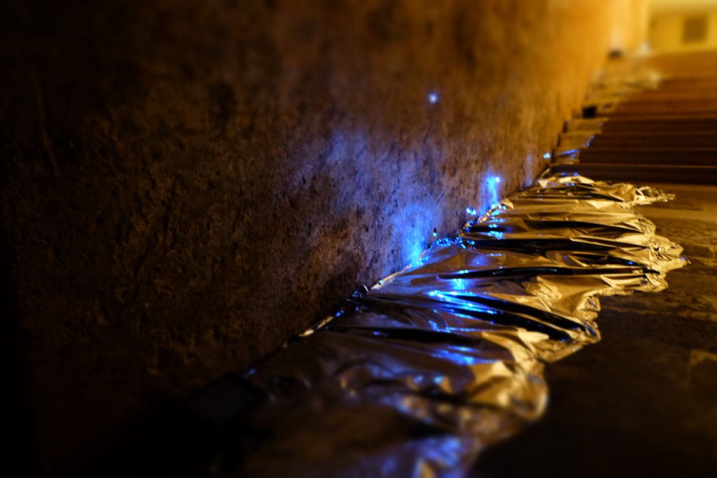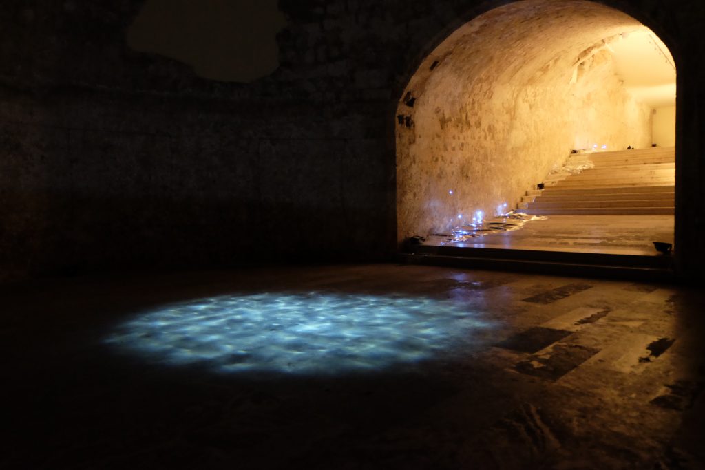 The intervention occupies the north eastern part of St.George Gate including a main passage and a rotunda with dome. It manipulates light as projection, reflection, and refraction, to create a landscape of water without water. Inspired from the Japanese concept of ‘minamo’ and the interactive installation of Torafu Architects at TOKYO DESIGNERS WEEK 2011, ‘Spatial Sea’ immerses the viewer into a floating sensation of almost touching but never fully reaching a water surface. As such, one becomes with the space to fully apprehend and appreciate an abstract condition of ever changing and fragile beauty.